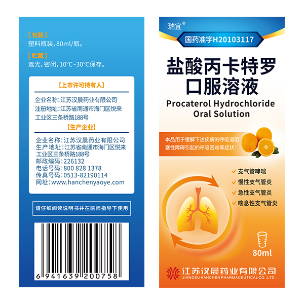 本品主要成份為鹽酸丙卡特羅,其化學(xué)名稱:5-(1-羥基-2-異丙氨基丁基)